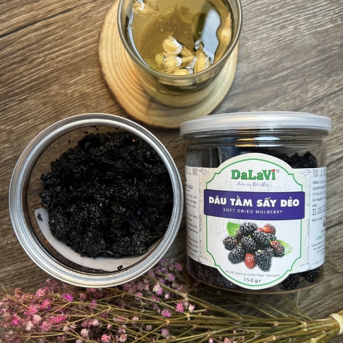Dâu tằm sấy dẻo DaLaVi được chế biến từ 100% trái dâu tằm tươi, không chất bảo quản