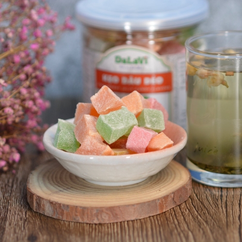 Kẹo dẻo hương trái cây có vị thơm đặc trưng của sữa, hương trái cây tổng hợp kích thích mọi vị giác khi thưởng thức. Món ăn ngon về thế giới kẹo không thể thiếu dành cho các bạn nhỏ